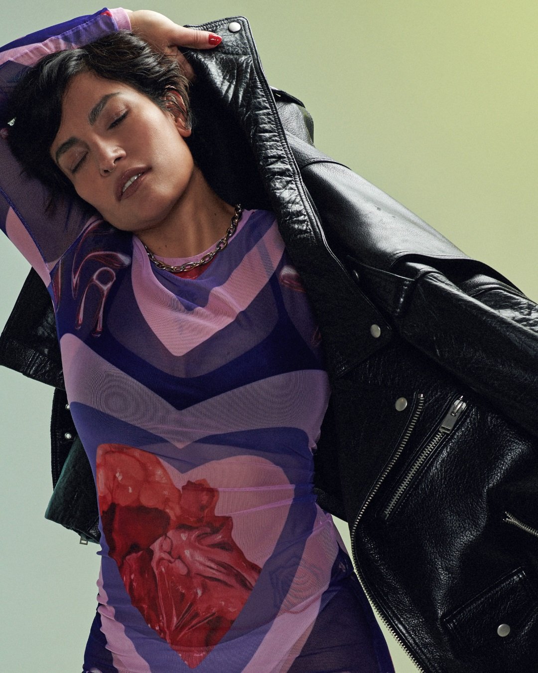 Vesta Lug: Vistiendo corset sublimado con las pinturas Valeiva en Revista Sarah