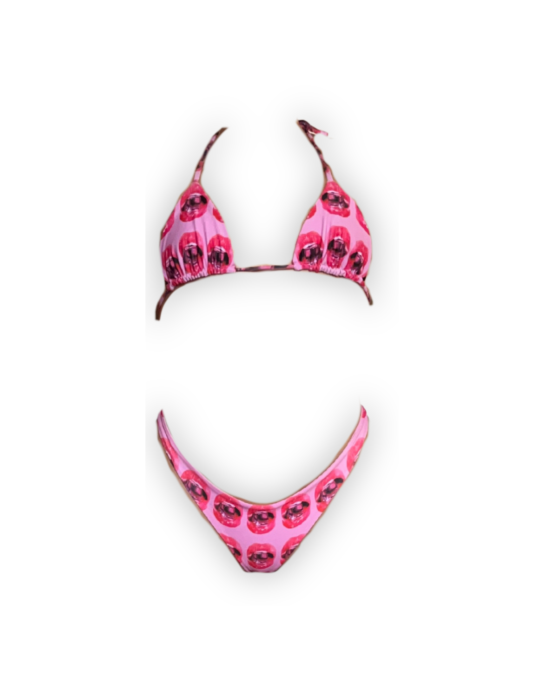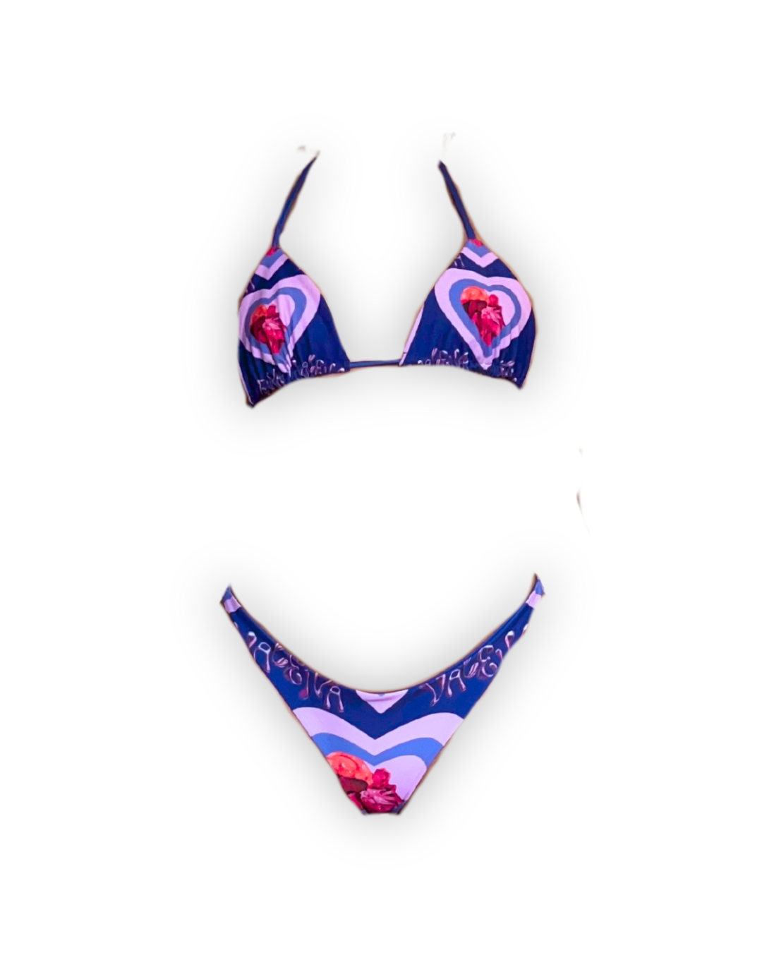 Bikini top de triángulos y botom culote, sublimado con pinturas al óleo