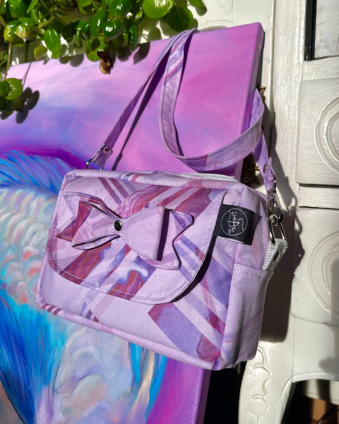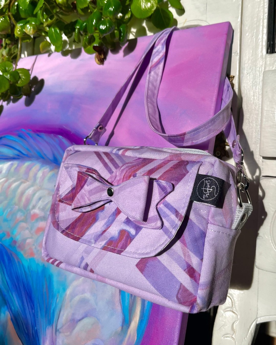 Cartera de edición limitada en colaboración con El Desborde sublimadas en tela gruesa gabardina, con pinturas al óleo en trama escocesa de la colección Hot Remedy