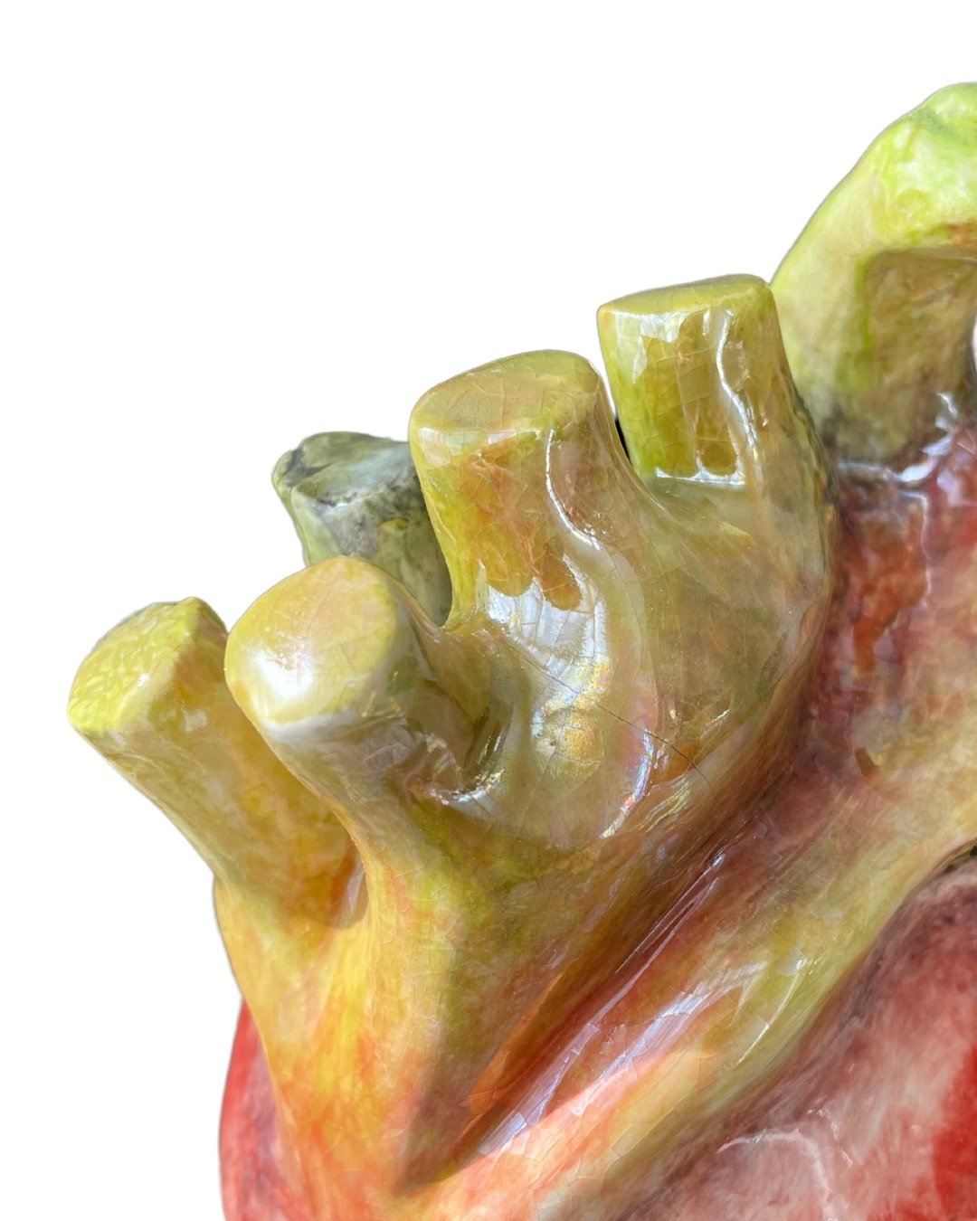 Escultura de cerámica modelada a mano pintado con agobes y oro