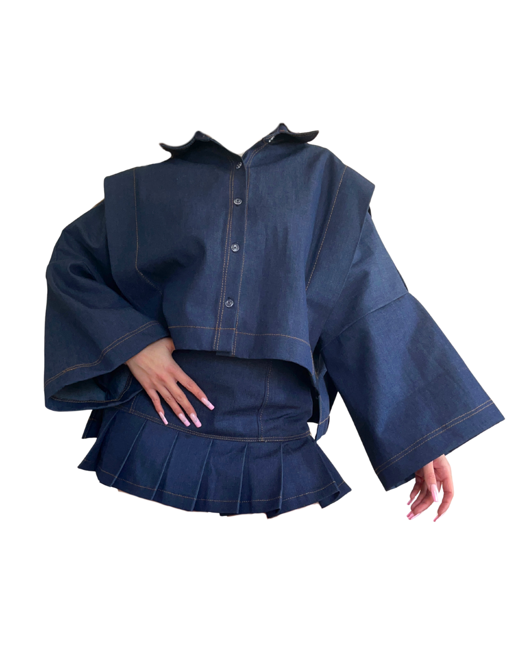 Falda denim, gruesa y rígida con cierre en la espalda.