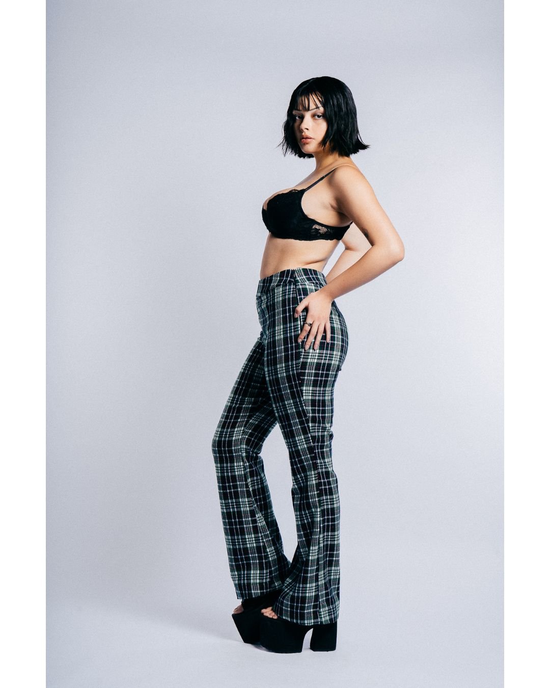 Pantalón Flare Escocés Verde
